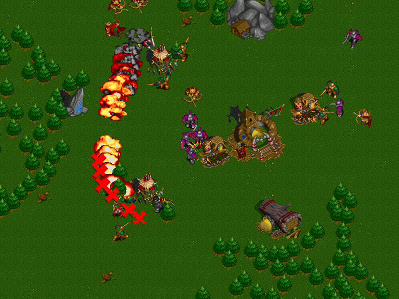 - Коллизии юнитов. ( Мечник в золотых доспехах прорывается в первые ряды, расталкивая лучников и магов, только конный рыцарь (ведь масса его больше, что уж тут) способен заставить сзлатошлемого храбреца свернуть с его пути )