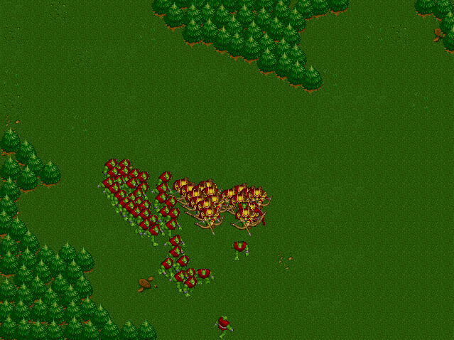 Пока еще нет анимации смерти у деревьев, не сделана камера (карта не будет ограничена размерами окна), герой бессмертен, стрелы невидимы (откровенно говоря, их вообще нет;), но общие представления из видео создать можно.