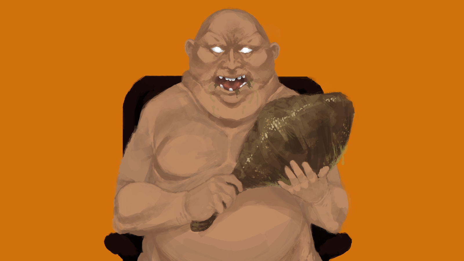 Арт первый мерзотный. Напомнил чувака из фильма "Семь", который от переедания помер.