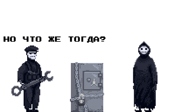 Место работы Жнеца - владения Смерти. Но разве может кто-то, имея такую возможность, не посягнуть на чужие владения? Вот так же и Война, Голод и Чума - не могут пройти мимо. Поэтому в игре появилась контрабанда и сейфы.