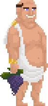 Возможно, он не так горяч, как некоторые другие боги, но в полном расцвете сил. В руках держит гроздь винограда. Виноград свежий, без брожения, но всё равно является признаком ада - едой, чревоугодие, значит. Если Дионис выбросит эту веточку, то может попасть в чистилище. Как и остальные, в общем. Красавец же, да?