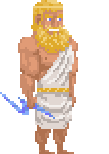 Я не стал придумывать особые квесты или эффекты для таких мощных героев, потому что это очень затратно. Возможно, после релиза появления Зевса будет сопровождаться молниями и прочим. Это всё сильно украсило бы игру, но пока - программа минимум. Хотя, молния есть в руках. Оружие, определённо.