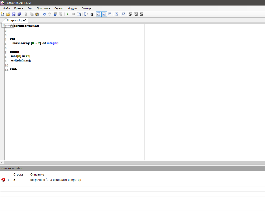 хм... это паскаль... Попробуй переписать) Раньше он писал в консоли, что нет точки в массиве, но она есть