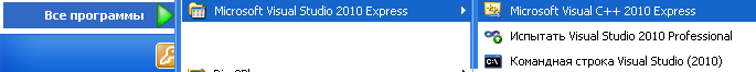 Теперь идем Пуск-Все программы-Microsoft Visual Studio Express-Microsoft Visual C++ Express