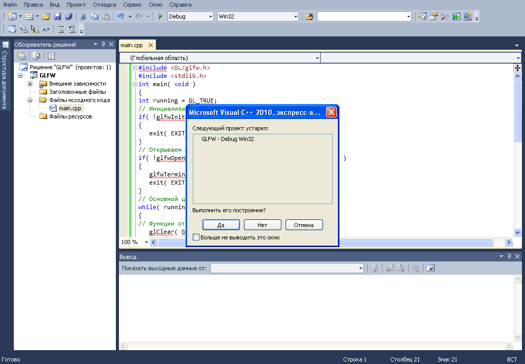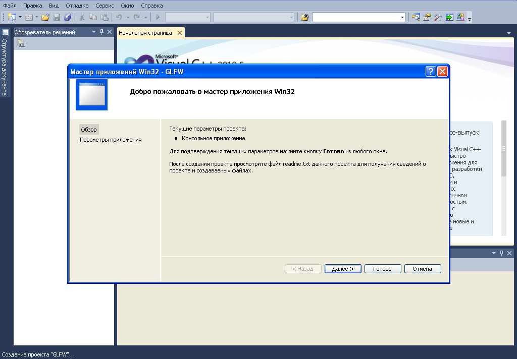 В этой мини-статье я расскажу о том,как установить и использовать библиотеку GLFW для создания окна в Microsoft Visual C++ 2010 Express .