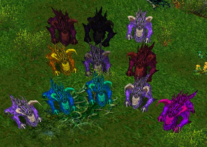 Имеется 10 уровней крипов дальнего и ближнего боя, которые спамятся случайно в игровой зоне. Количество крипов увеличивается с числом игроков, а их уровень повышается с течением времени.
