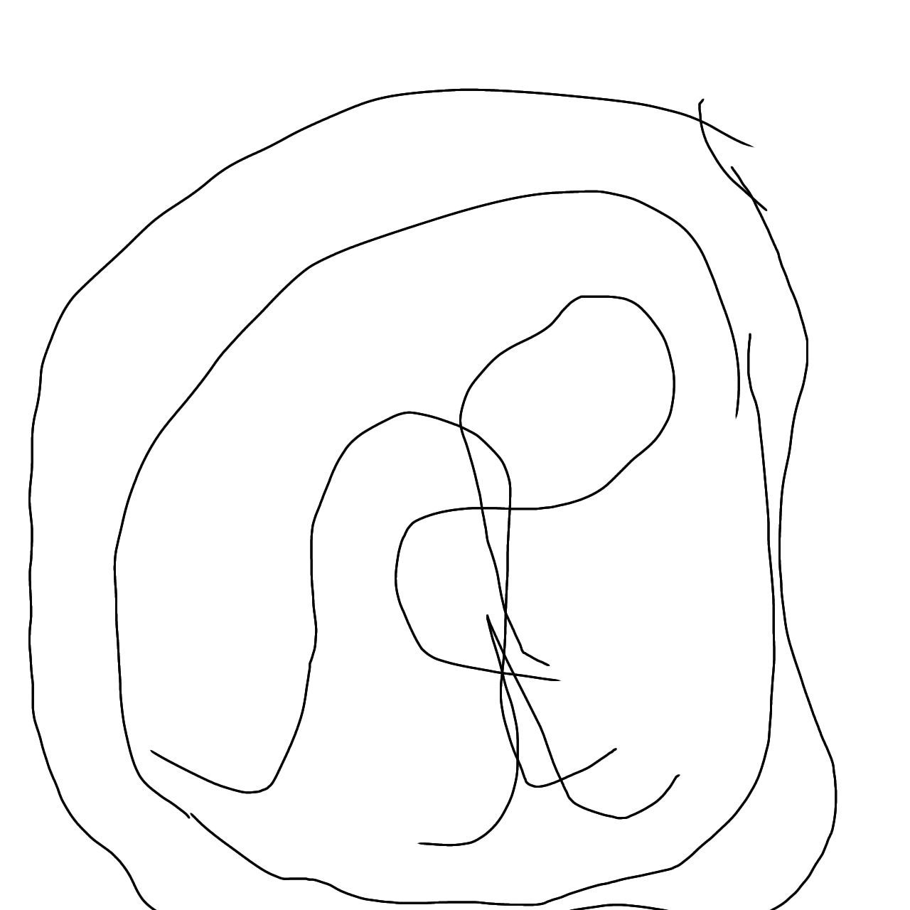 Три прямоугольника обведенные чертами друг к другу, треугольники в обратном положении от других фигур, и круг в центре всех.
