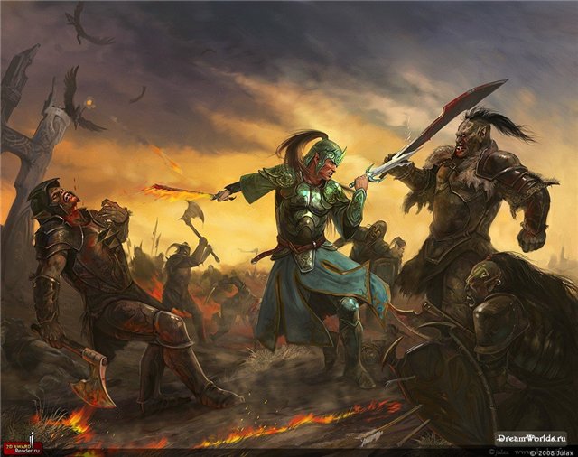 Эльфы сильно разъярились, видя, что люди вкупе с остальными расами на Арвеллоне (включая орков) весело рубят леса и убивают животных, и напали на людей. Пожалели. Спасла их только магия - врагов было в пятнадцать раз больше. С тех пор довольно малочисленные эльфы предпочитают в одиночку ни с кем не воевать.