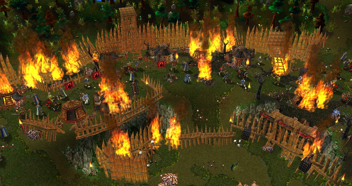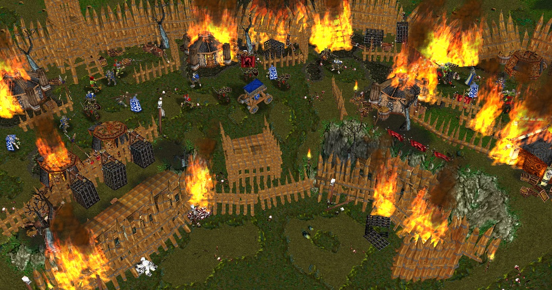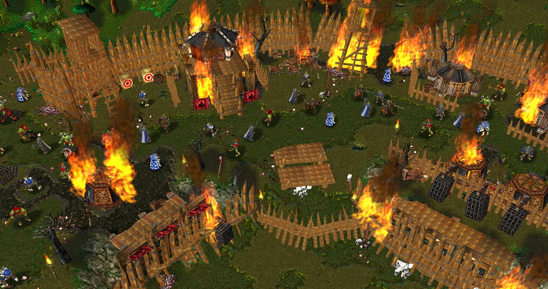 Скрины 10 миссии. Карта дуэльная - 2 героя сражаются в центре лагеря орков в пылу общего сражения.