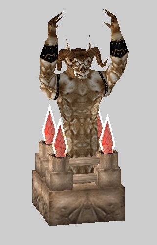 Кстати насчёт скалы в качестве постамента хорошая идея. Если сделать нормальную такую скалу с нормальной полигональностью и "врастить" в неё статую (как будто она высечена из этого валуна), будет выглядеть весьма монументально и прочно. И вполне себе по-демонически.