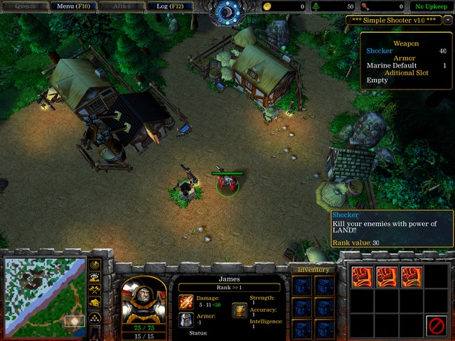 Simple Shooter - миниигра, которую я начал лепить от нечего делать (а так же из-за того, что хотел начать изучать cJass). Карта представляет собой стрелялку, в которой морпехи из StarCraft 2 убивают друг друга. Планируется поддержка нескольких модов игры, как то DeathMatch и Capture the Flag.