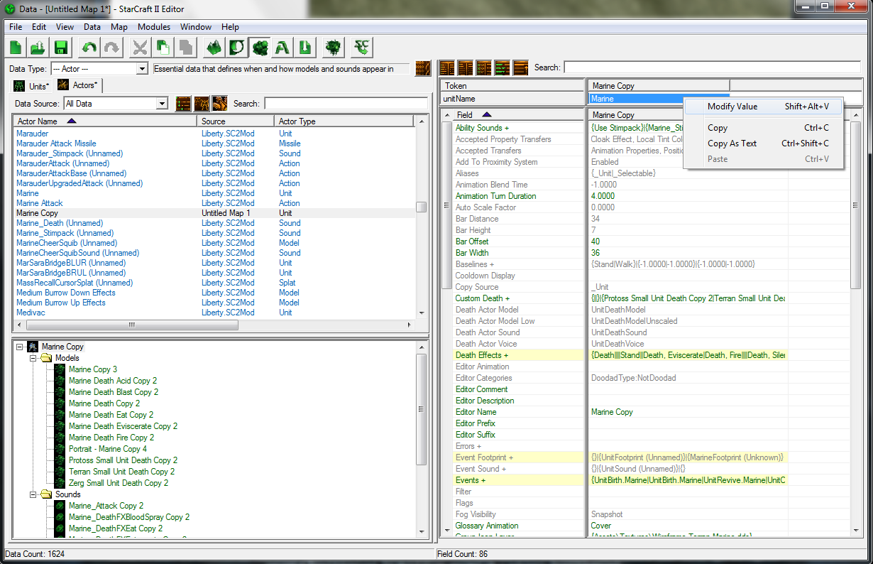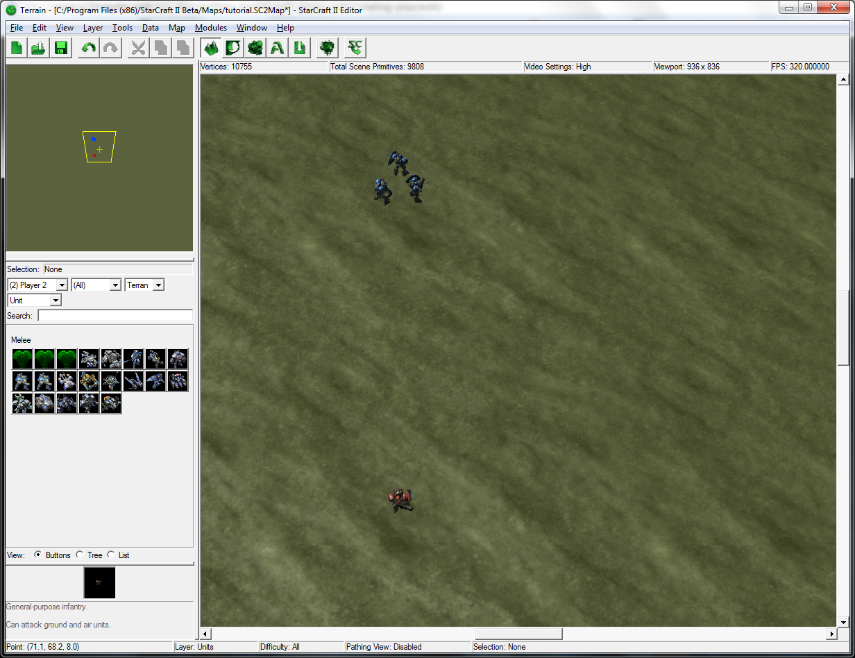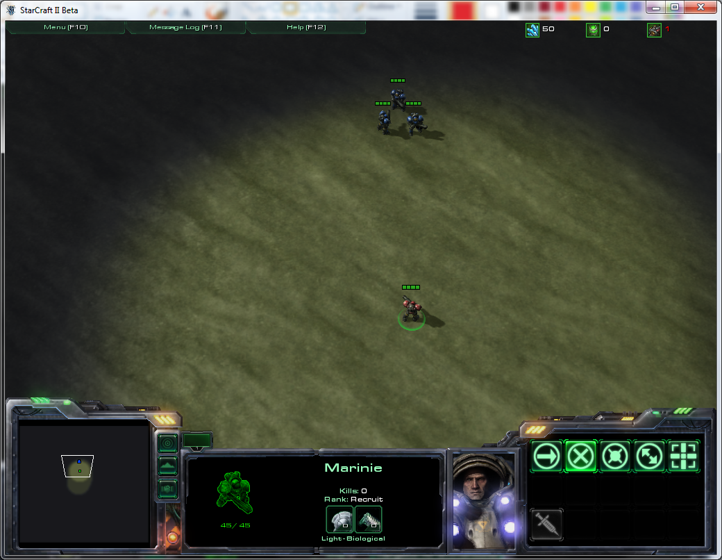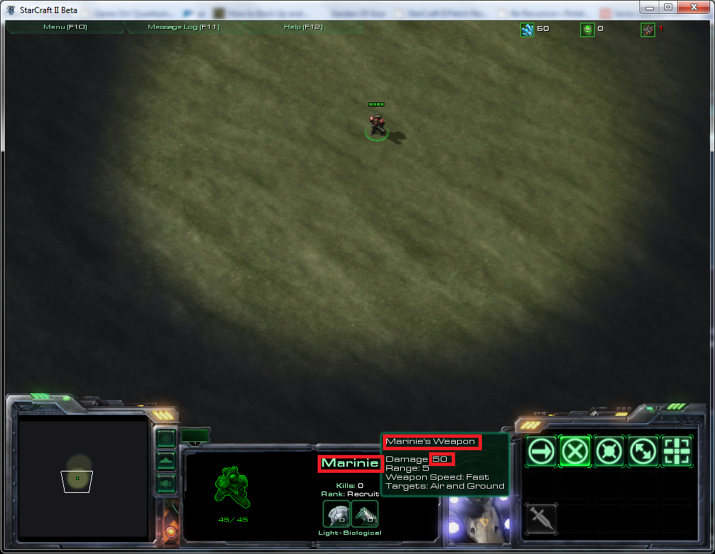 Вначале давайте создадим измененного пехотинца (Marine) на основе существующей боевой единицы.