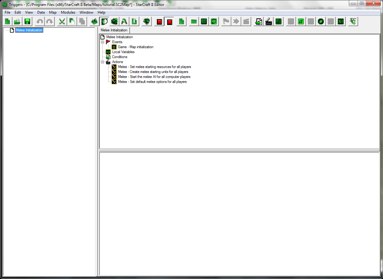 Для того чтобы удалить триггеры, моментально завершающие игру при запуске карты, запустим Редактор триггеров (Trigger Editor).