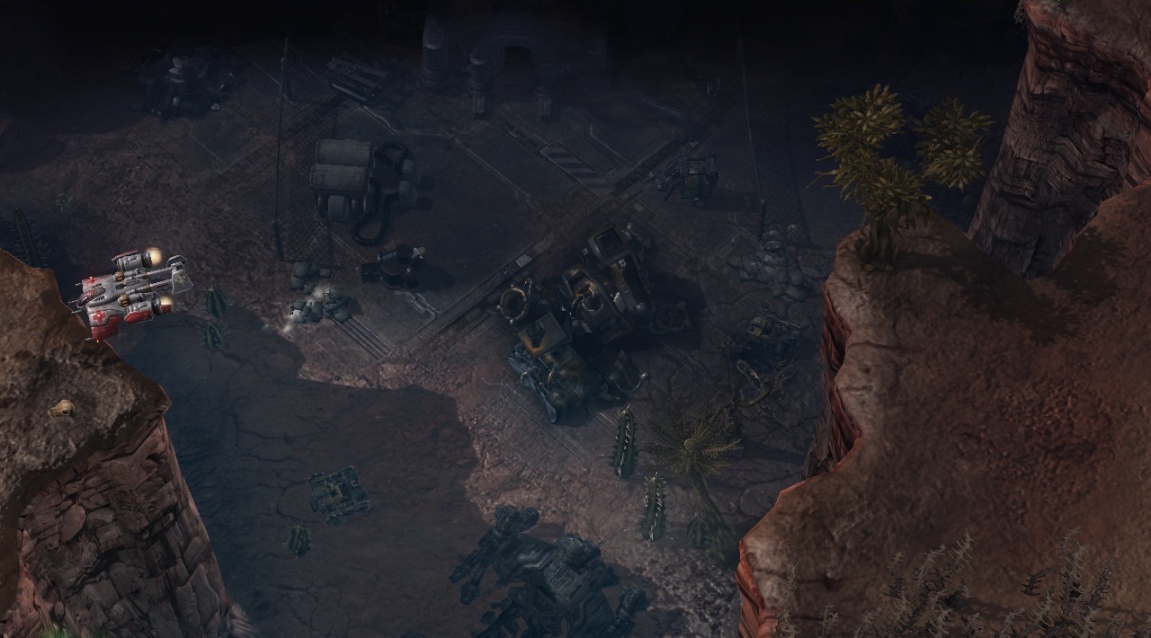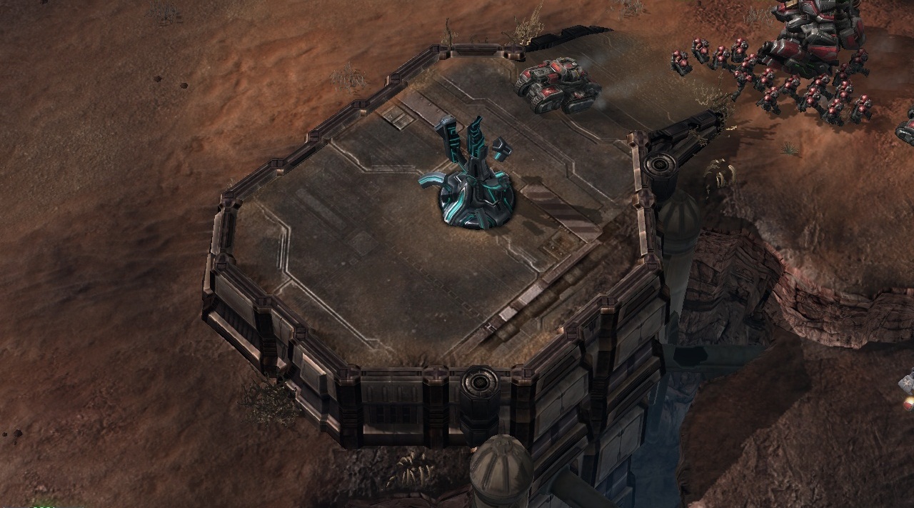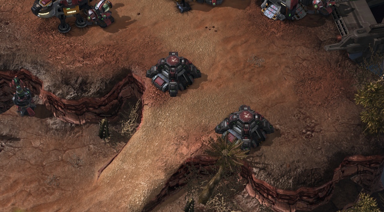 Карта на двух игроков. Битва ведется в пустыне. Скудная растительность, огромные каньоны — всё как полагается. Скорее всего это планета Мар Сара, так как заметны следы деятельности человека террана.