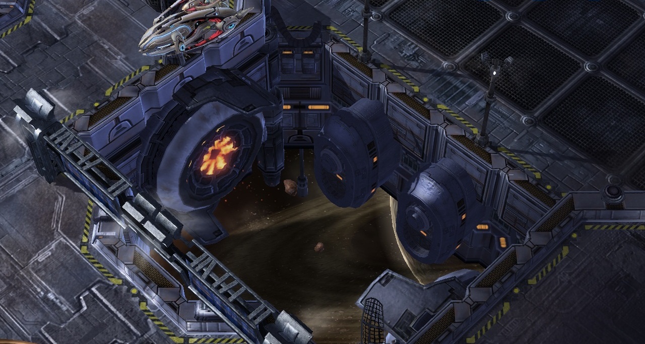 Платформа имеет форму подковы. На концах расположены стартовые игроков, так что хоть базы и близко, наземным войскам придётся делать значительный крюк. По пути к основанию «подковы» встретится по 2 ресурсных поля с каждой стороны. В основании два прохода. Около самого дальнего богатые минералы и башня зел-наг, вторая на проходе поближе. Кроме перечисленных имеется ещё три залежи ресурсов: две на полуостровках недалеко от основания (путь закрыт обломками, придётся пробиваться) и одна на отдельном метеоритике витает меж стартовых позиций. Посередине можно пробить ещё один проход через скалы.