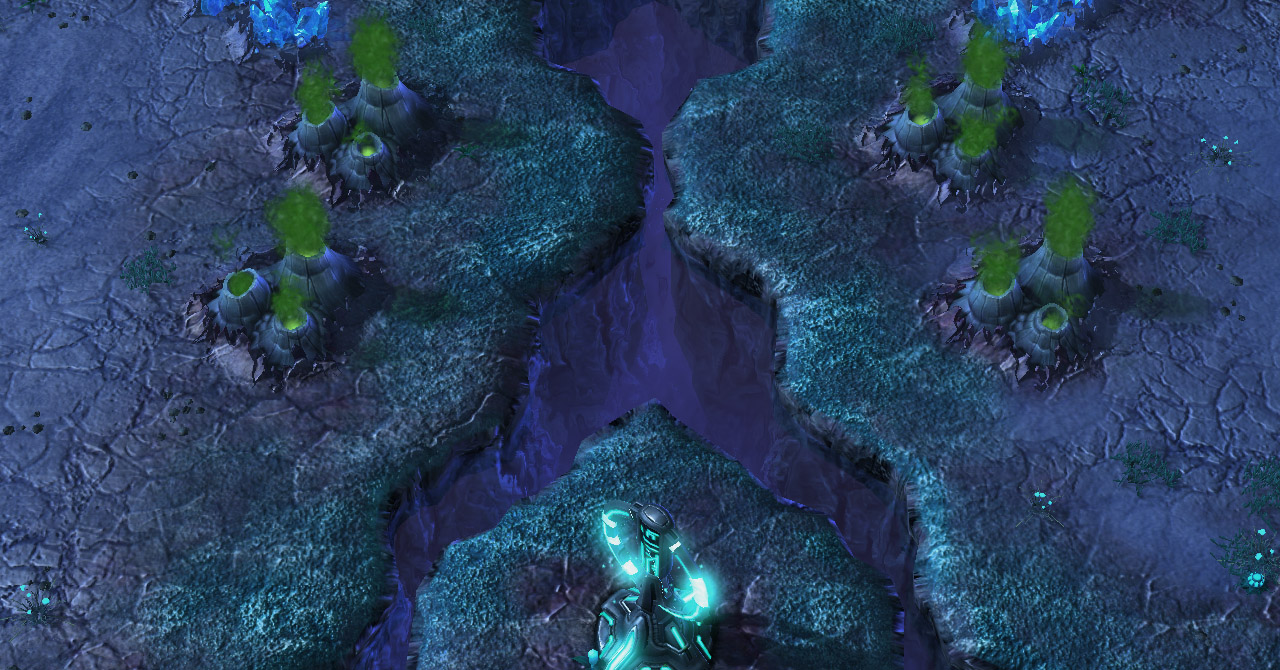 Вы и союзник расположены рядом, к соперникам ведет всего один проход, но это не означает, что атака будет предсказуема. При старте, внимательно осмотрите базу, там должны находиться каменные глыбы, загораживающие альтернативный проход к вашей базе, которым также можно мудро воспользоваться для оригинальной атаки.