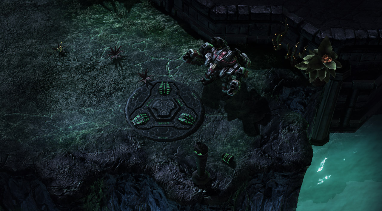 На территории карты расположено 3 прохода между базами, на каждом проходе традиционно стоит по башне Зел-Наг, для достижении преимущества стоит занимать высокие точки на карте (те, что рядом с башнями и другие), а для того, чтобы вас раньше времени не убили, стоит поставить дозорных на подступах к вашей базе. Сначала кажется, что подступ всего один (и, кстати, довольно широкий и расположен далеко от самой базы, что не позволит его просто загородить постройками или войсками), но на самом деле, не стоит забывать и о воздушных силах врага (особенно о транспортных летательных аппаратах).