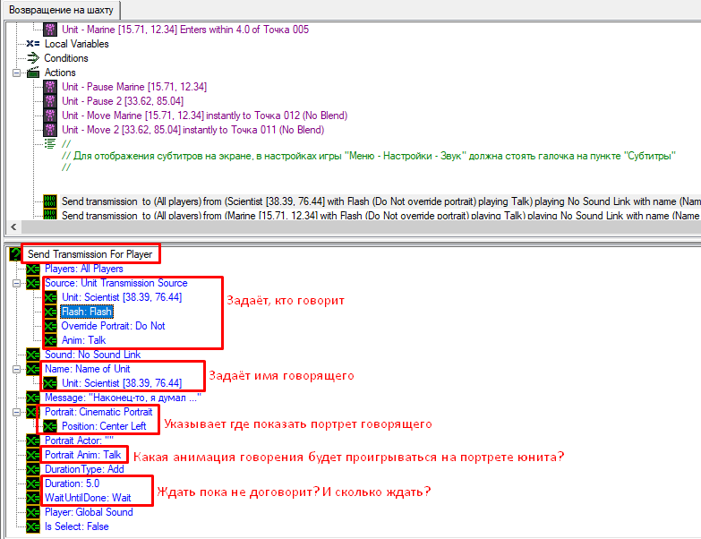 - Оно позволит тебе задать говорящего юнита,