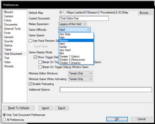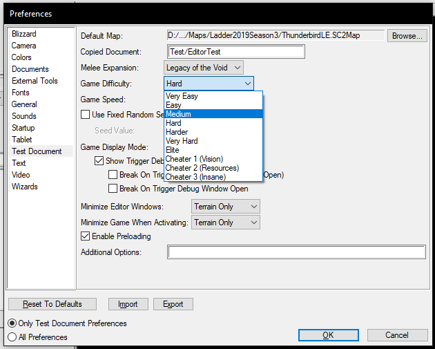 Нужно открыть вкладку File - Preferences, и в настройках в разделе Test Documents выставить сложность ИИ для тестовых запусков.