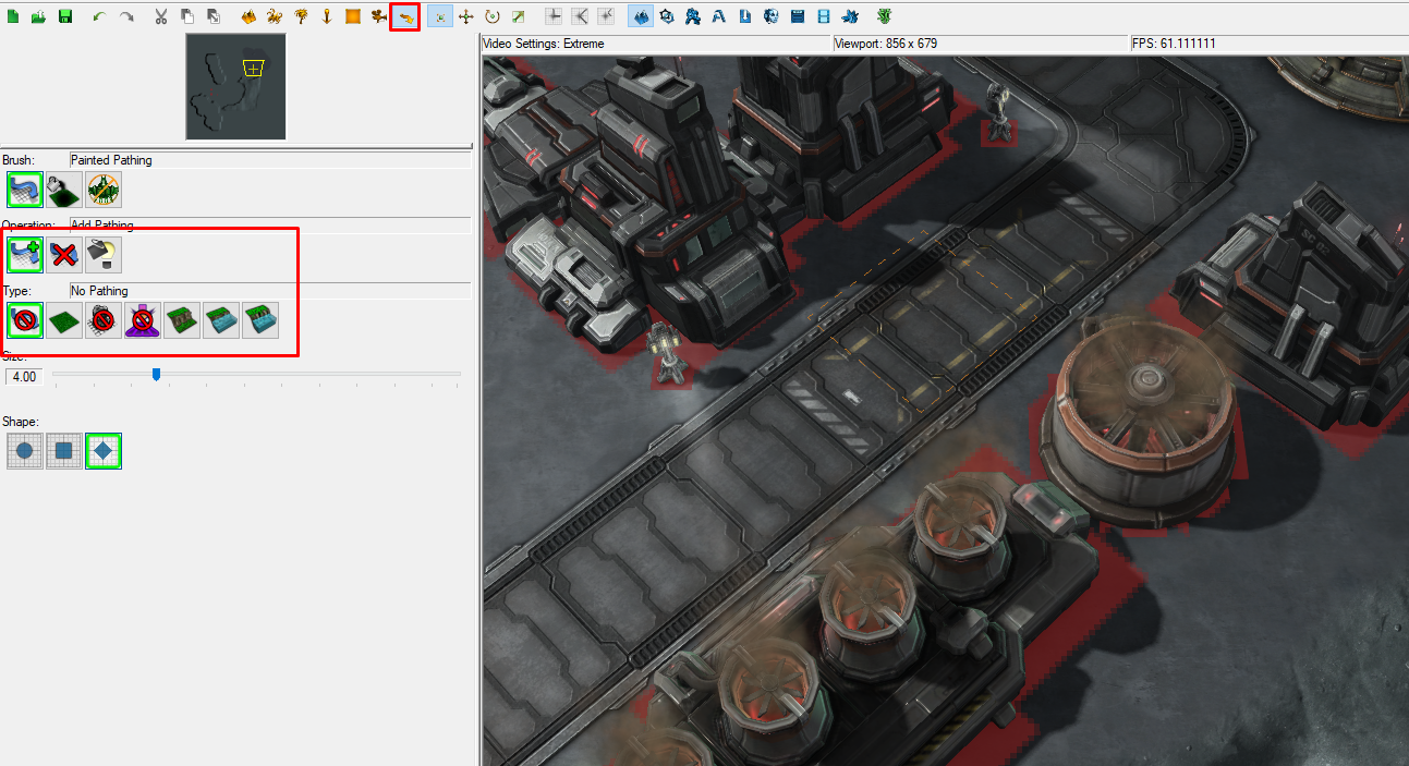Для этого на верхней панели редактора (Там где разделы Поверхность, Единицы, Декорации, Точки) выберите раздел Pathing (Проходимость).