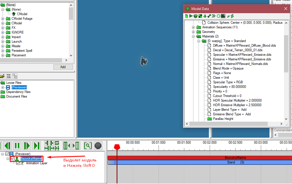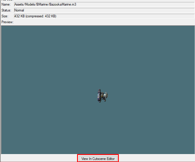 - Открыть модель в редакторе катсцен (соответствующей кнопкой рядом с превью модели)