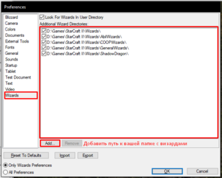 Рекомендую в корневой папке с игрой создать папку StarCraft II/Wizards/ и помещать все визарды в неё.