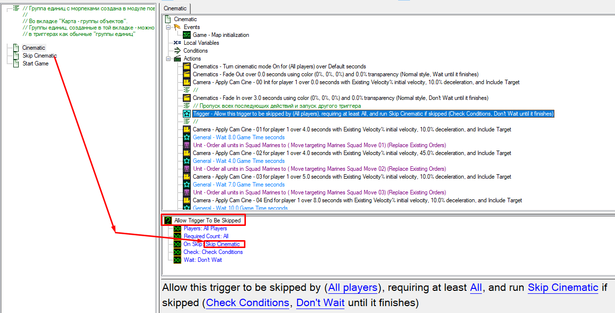 И не надо делать, как в WarCraft 3, никаких "опорных точек" с проверкой переменной после каждого действия ролика: "ролик скипнут? А сейчас скипнут?"