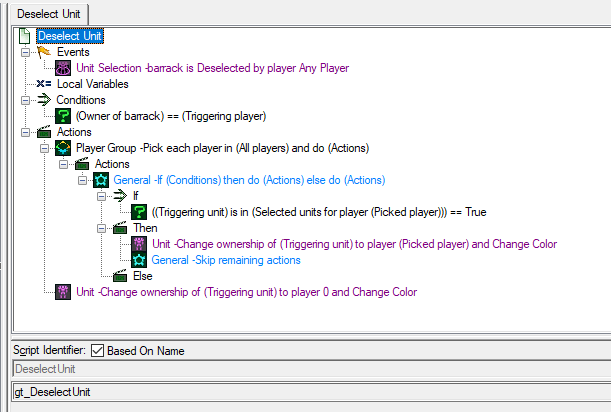 То в таком случае, контроль этой единицы из переменной меняется на того кто её выбрал (То есть на (Triggering Player) # А Triggering Player это специальная функция, которая возвращает того игрока, который активировал событие)