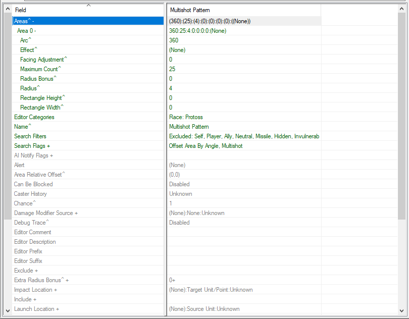 - Добавить в поле Areas область, в которой задать её радиус, и ещё можно указать максимальное количество целей в которых дополнительно выстрелить.