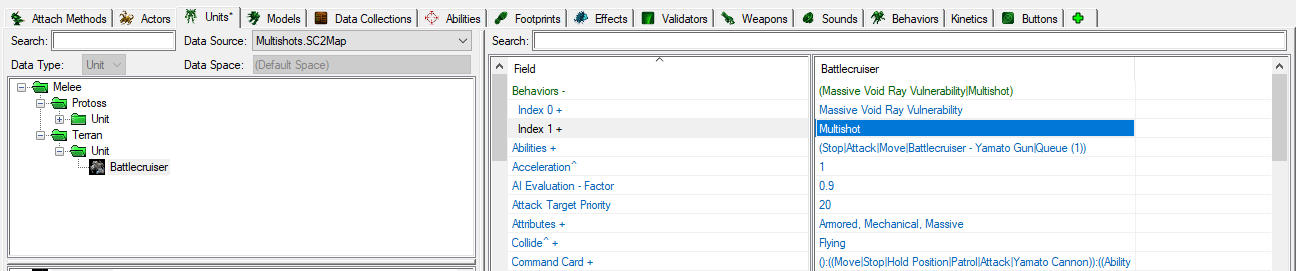 Возможность дать один и тот же бафф мультишот атак любым боевым единицам, без нужды редактировать структуру эффектов оружий каждой единицы, которым хотите добавить мультишот. Просто добавил бафф в Behaviors -> мультишот работает!