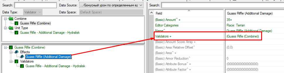 а затем, этот валидатор Combine, нужно указать в ваш эффект урона, для дополнительного наносимого урона.