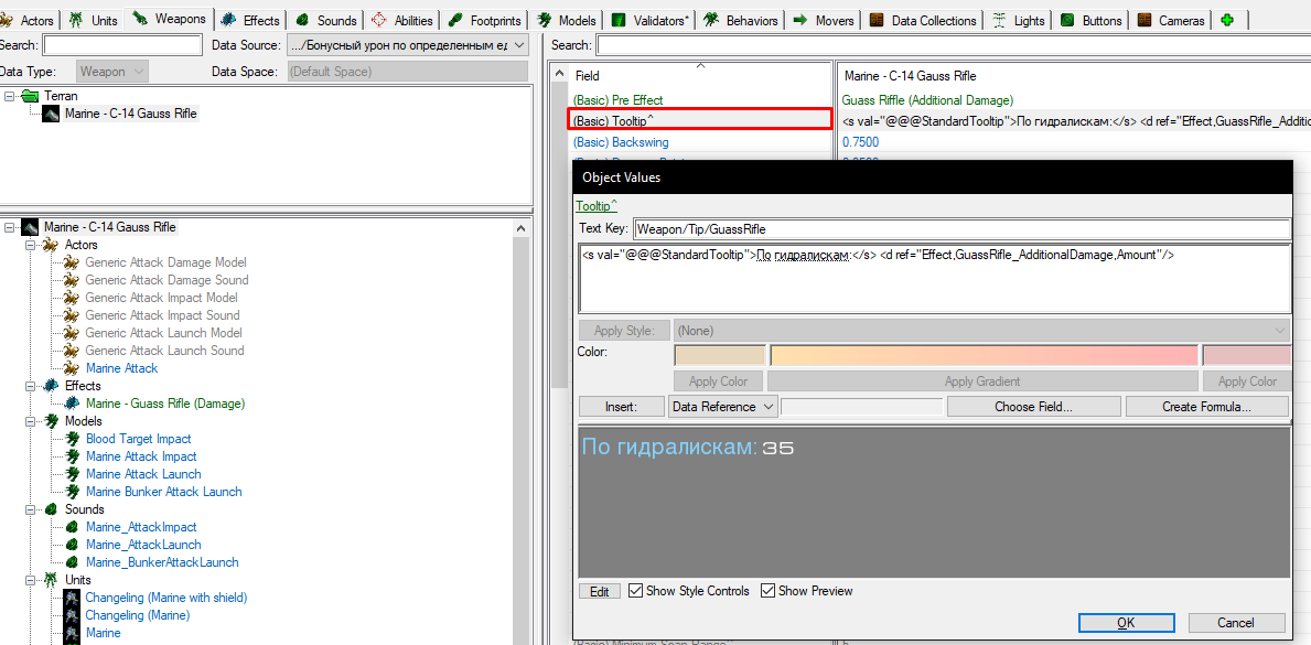 Но а что если нужно нанести дополнительный урон по определенным типам единиц? Скажем, нужно чтобы оружие наносило +15 урона только по гидралискам?