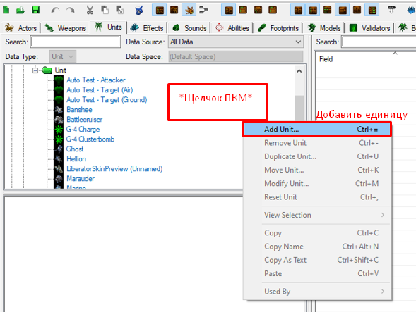 - Сама единица (Раздел данных: "+" - Edit Game Data - Units)