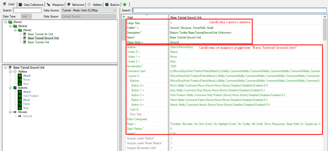 Единицы в StarCraft 2 разделены на несколько составляющих компонентов.