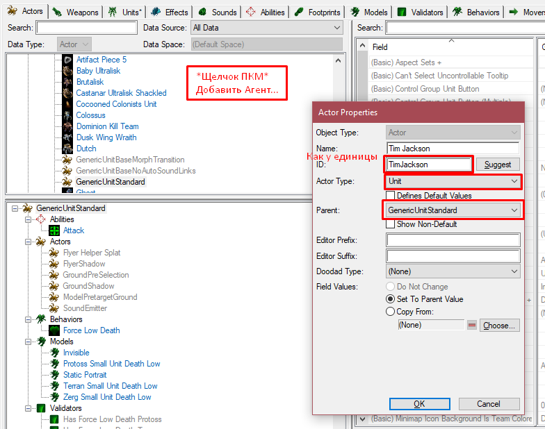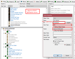 Далее идём в раздел "+" - Edit Actor Data - Actors и создаём там новый актор типа Unit с таким же ID как и у единицы