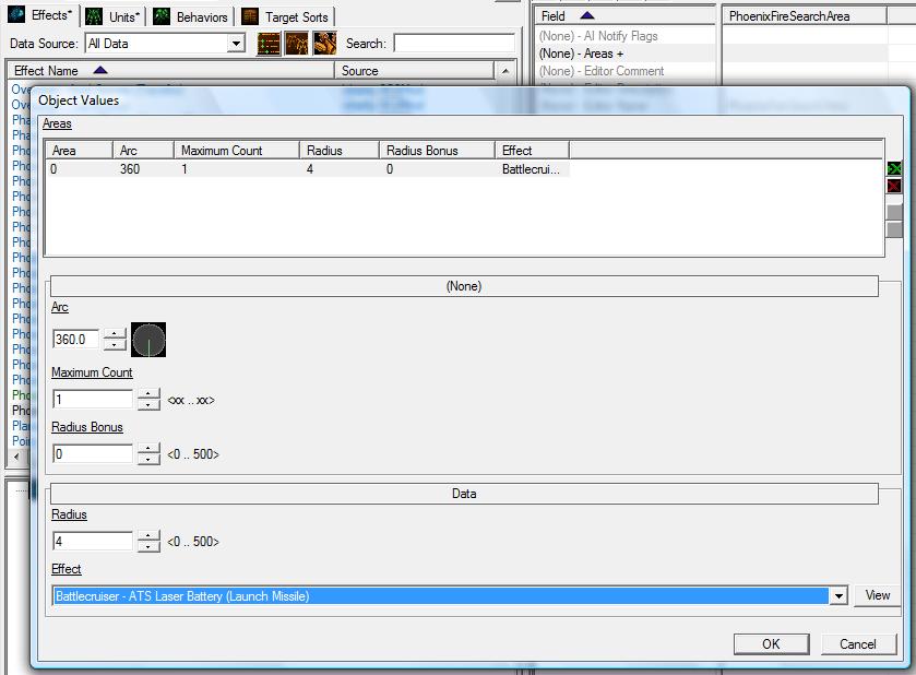 - Поставьте в пункт "Effect - Periodic" созданный нами ранее еффект (PhoenixFireSearchArea).