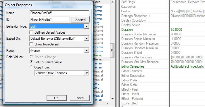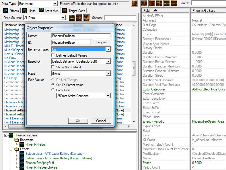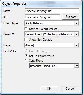 2.1 Создайте Behavior таким же образом, как и в пункте 1.4, но измените имя на "PhoenixFireBuff" и подберите ID.