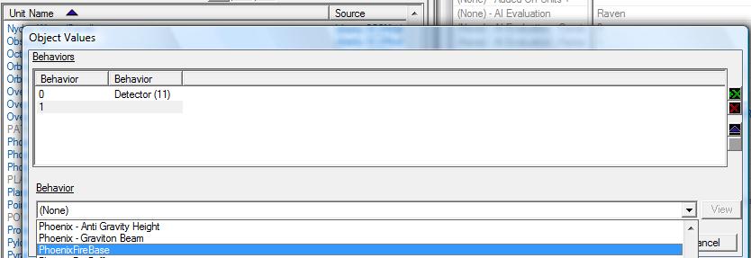 Затем нажимите на графе "(None) - Behaviors". Raven уже имеет один пункт (Detector), но мы добавим ещё один.