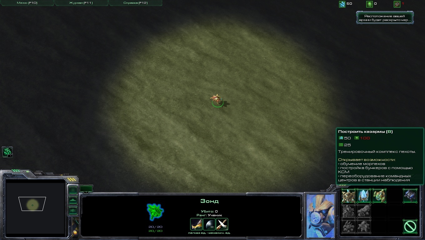 Итак, в качестве примера добавим Зонду (Probe) возможность строить Казармы терранов. Для этого нам потребуется изменить уже существующую способность, что отличается от процесса создания новой способности, рассмотренного здесь.