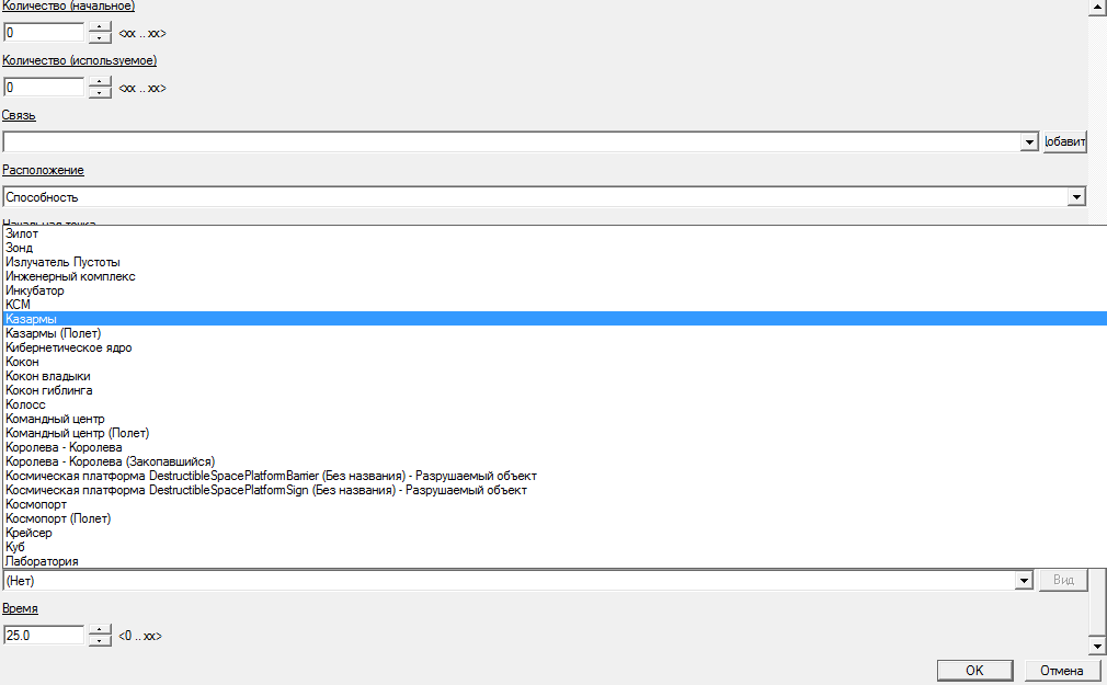 В списке отыщем пункт Казармы (Barracks) и нажмем ОК в окне свойств способности, а затем - в окне выбора здания.