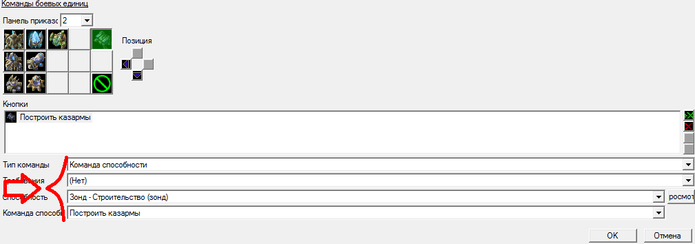 • Команда способности - "Построить казармы" (Ability Command - "Build Barracks")