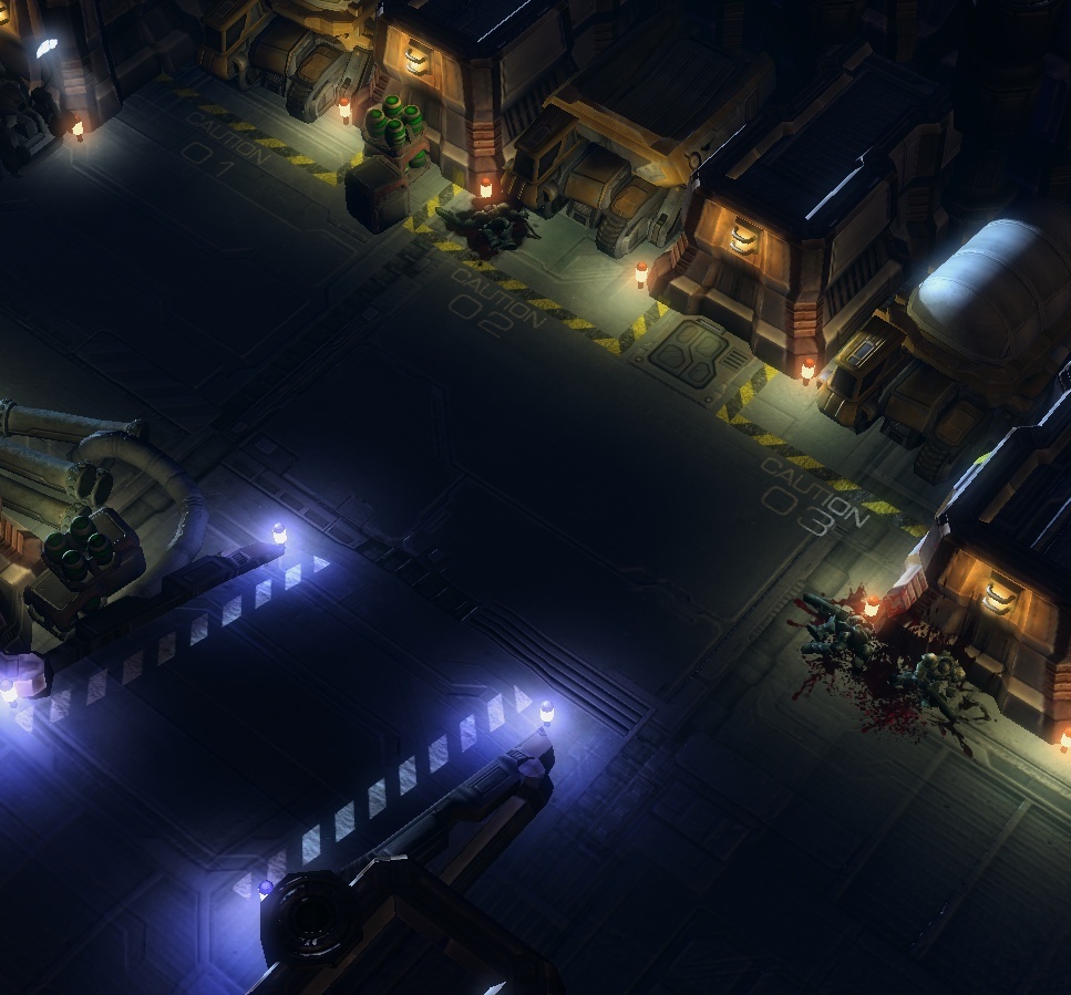 Сами по себе перекрашенные лампы продолжают светить белым светом - это можно исправить, поставив поверх них стандартные источники света. Все их имена начинаются с Light Omni, дальше идет имя, и либо ничего, либо Large - с радиусом примерно раза в два больше. Особенно красиво это выглядит в условиях темноты, как при таком освещении.