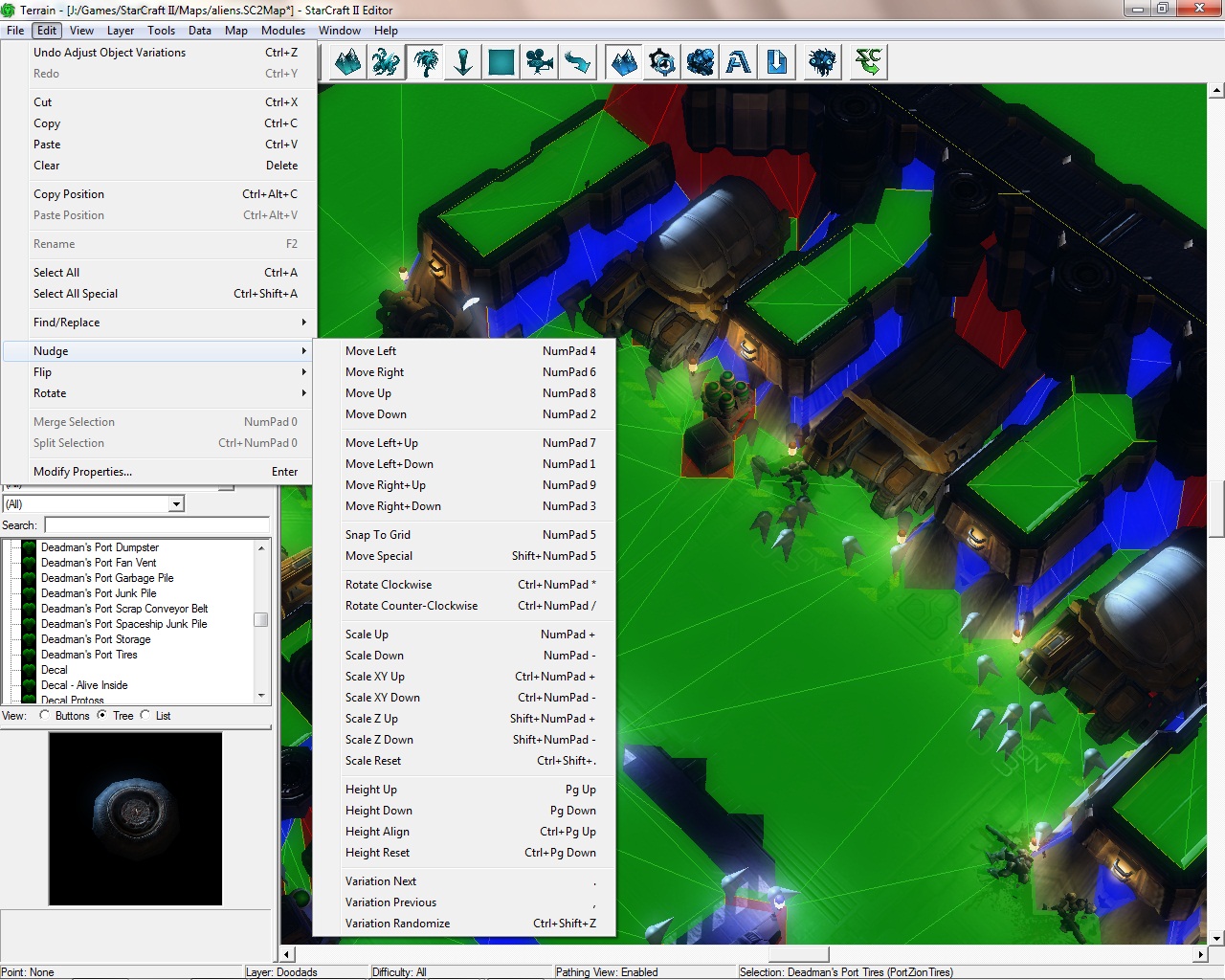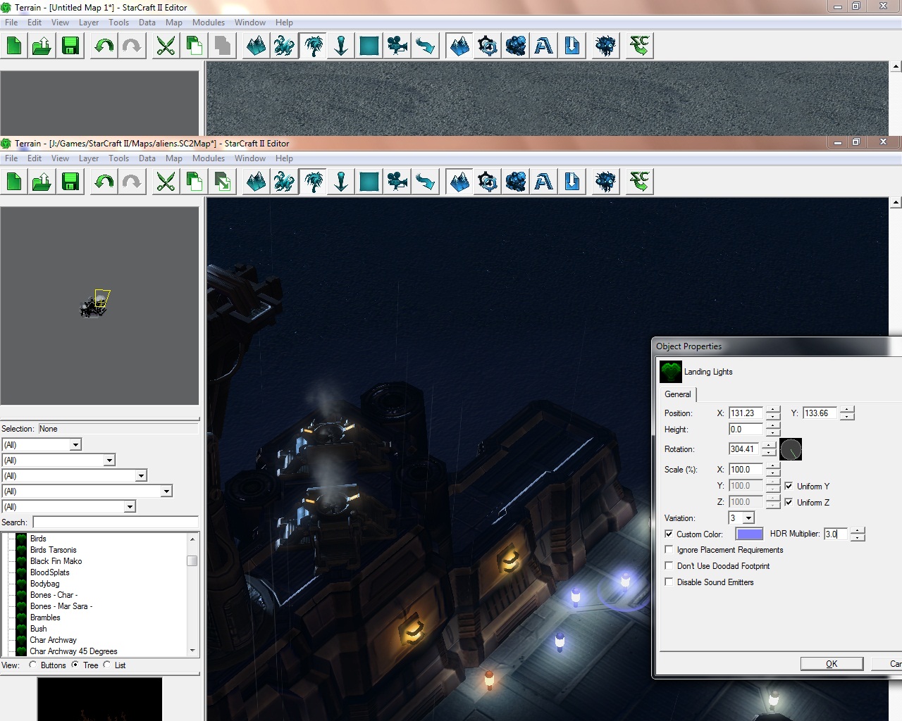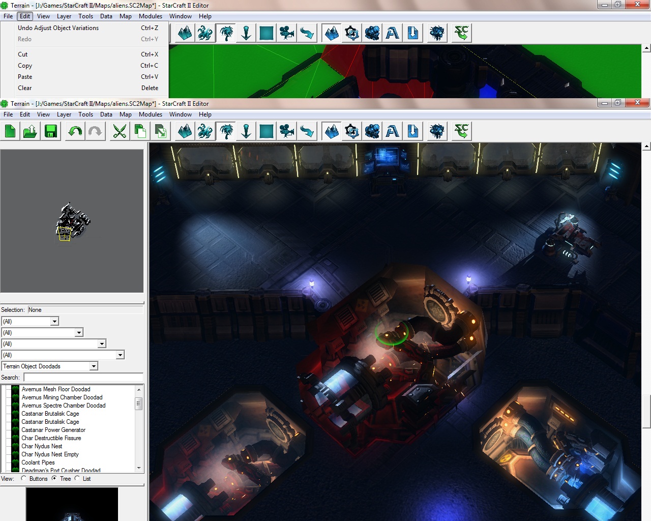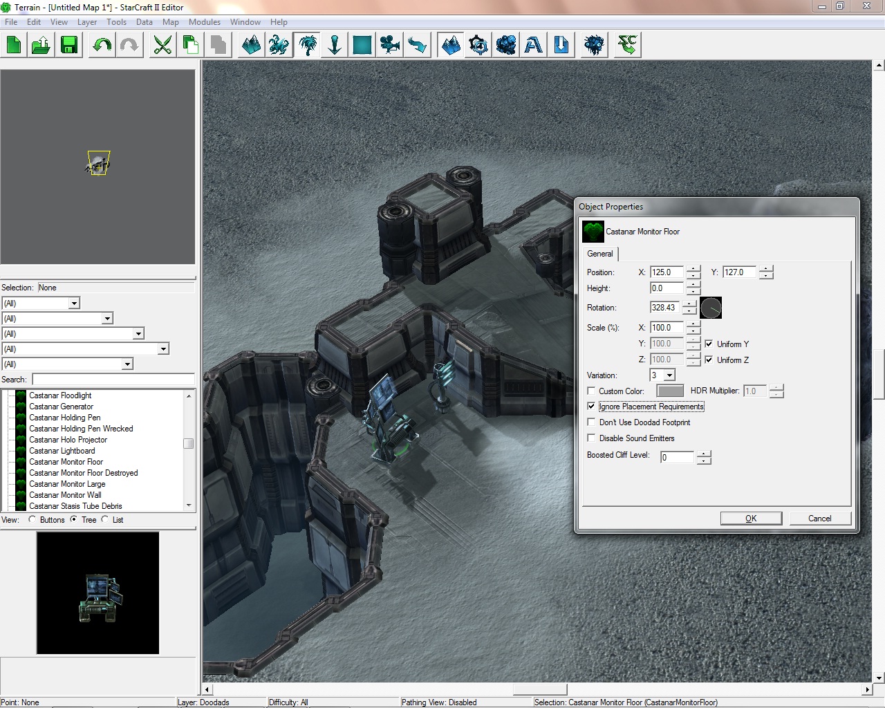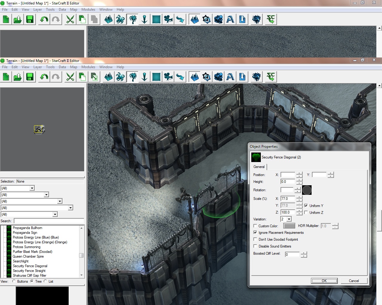 А так же расставить юнитов, чтобы убедиться в проходимости и соответсвии размеров. В СК2 юниты, как правило, достаточно более мелкие чем в Вар3. Если быть точнее, то их размеры более разбросаны, для того чтобы была видна разница между Марином и Ультралиском.