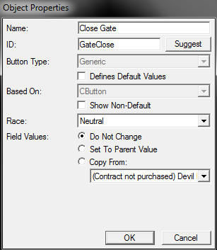 Теперь щёлкните правой кнопкой мыши на вашу новую кнопку,"Открыть Ворота Копия"(Open gate copy), выберите "Модифицировать обьект" (Modify object) (Ctrl+M) и переменуйте его в "Закрыть ворота" (Close gate)