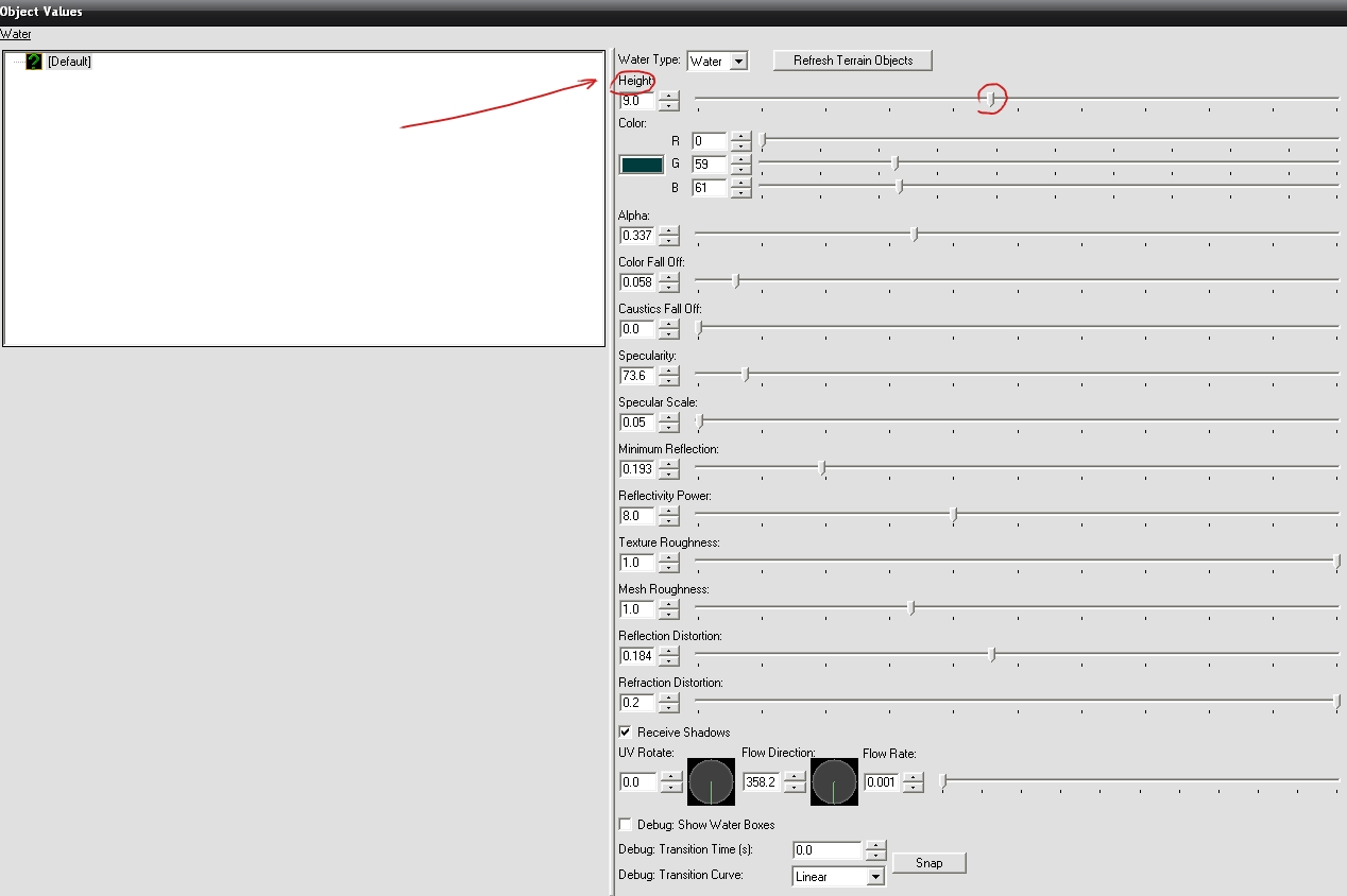 Параметр Height определяет высоту нашей воды, выставляем нужную величину и закрываем Data Editor.