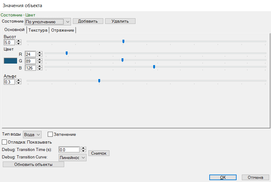 Состояние: позволяет использовать разные виды текстур, для переключения между ними, можно, как удалять, так и добавлять разные состояния