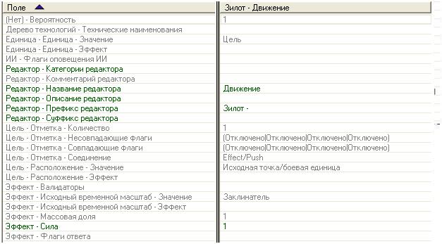 | 19 | Физическое воздействие | толкает или притягивает единицу. Эффект очень слабоватый и обычно перемещает единицу на очень маленькое расстояние. Используется в Воронке для стягивания единиц в центр. |