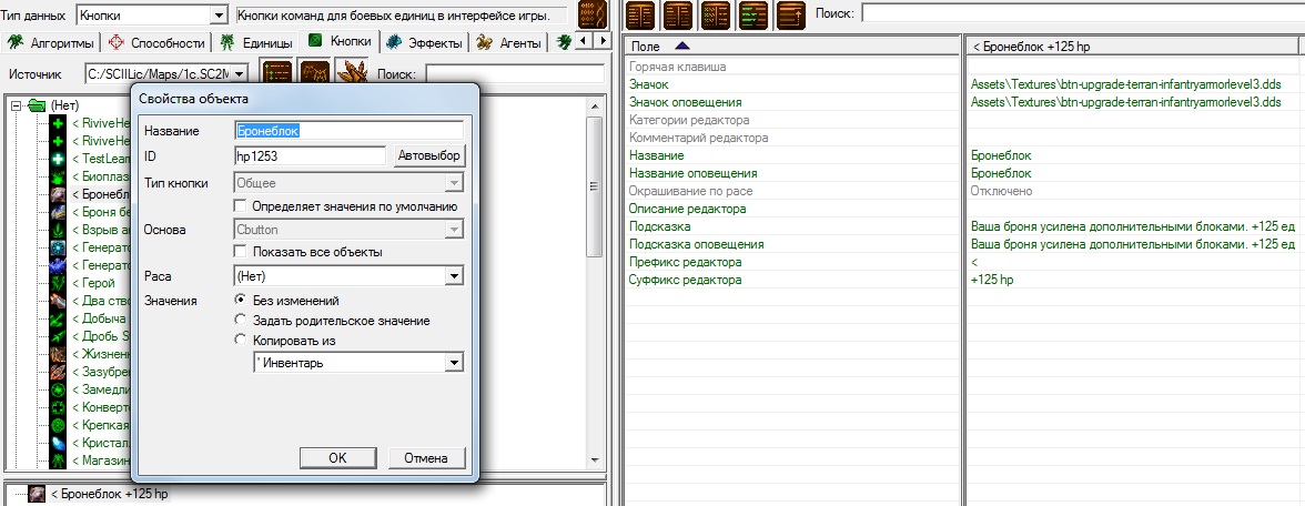 Для примера создадим кнопку, для пассивной способности «Бронеблок», при наведении на которую будет она информировать нас о том, что броня усилена на 125 ед.