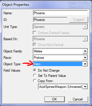 Откройте Свойства Объекта (Object Properties) и измените тип объекта 'Unit' на 'Hero' (герой).