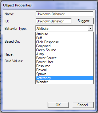 Щелкните правой кнопкой мыши и выберите 'Добавить объект'. Эта часть необходима для того, чтобы изменить значение 'Behavior Type' (тип алгоритма) на 'Veterancy' (получение опыта).